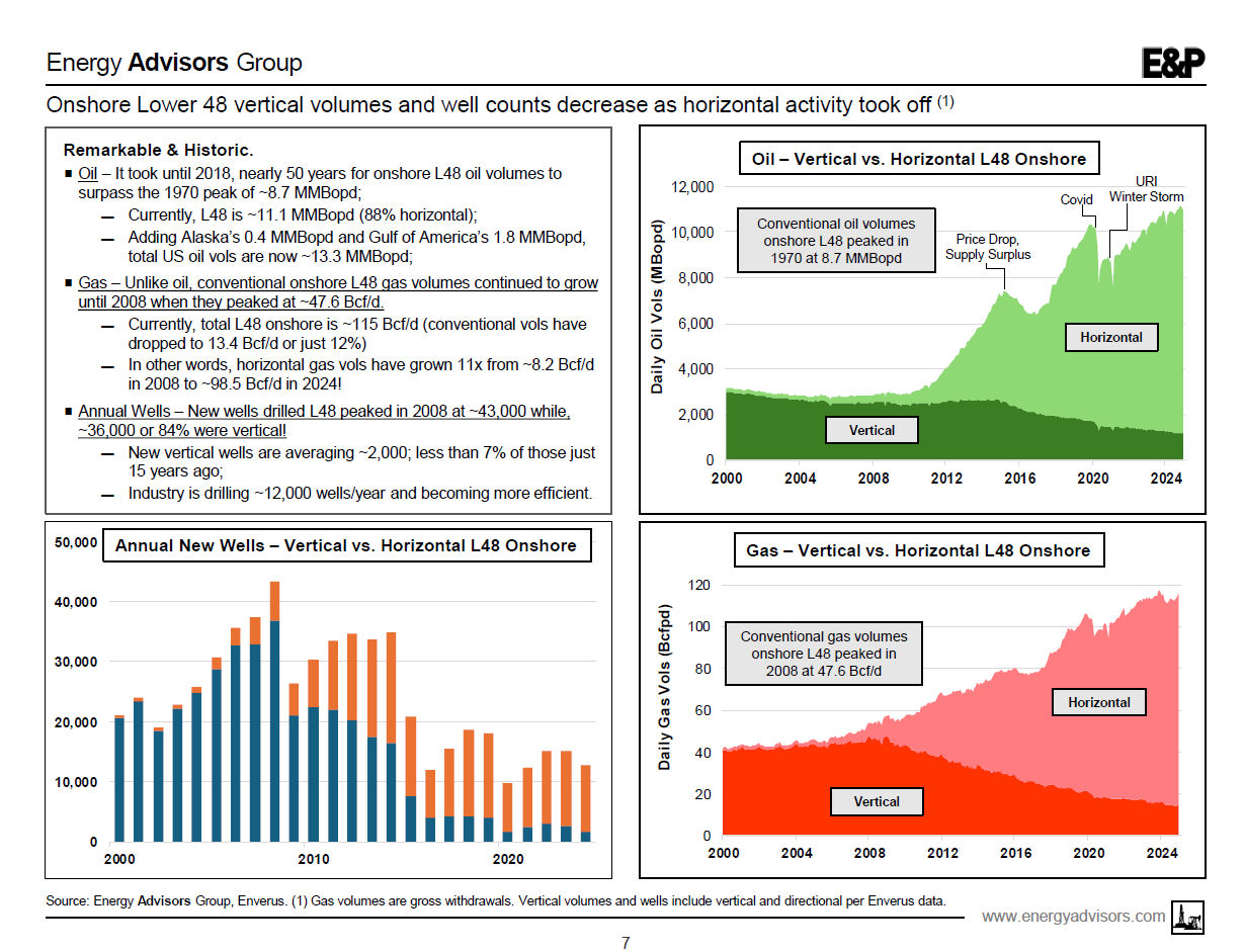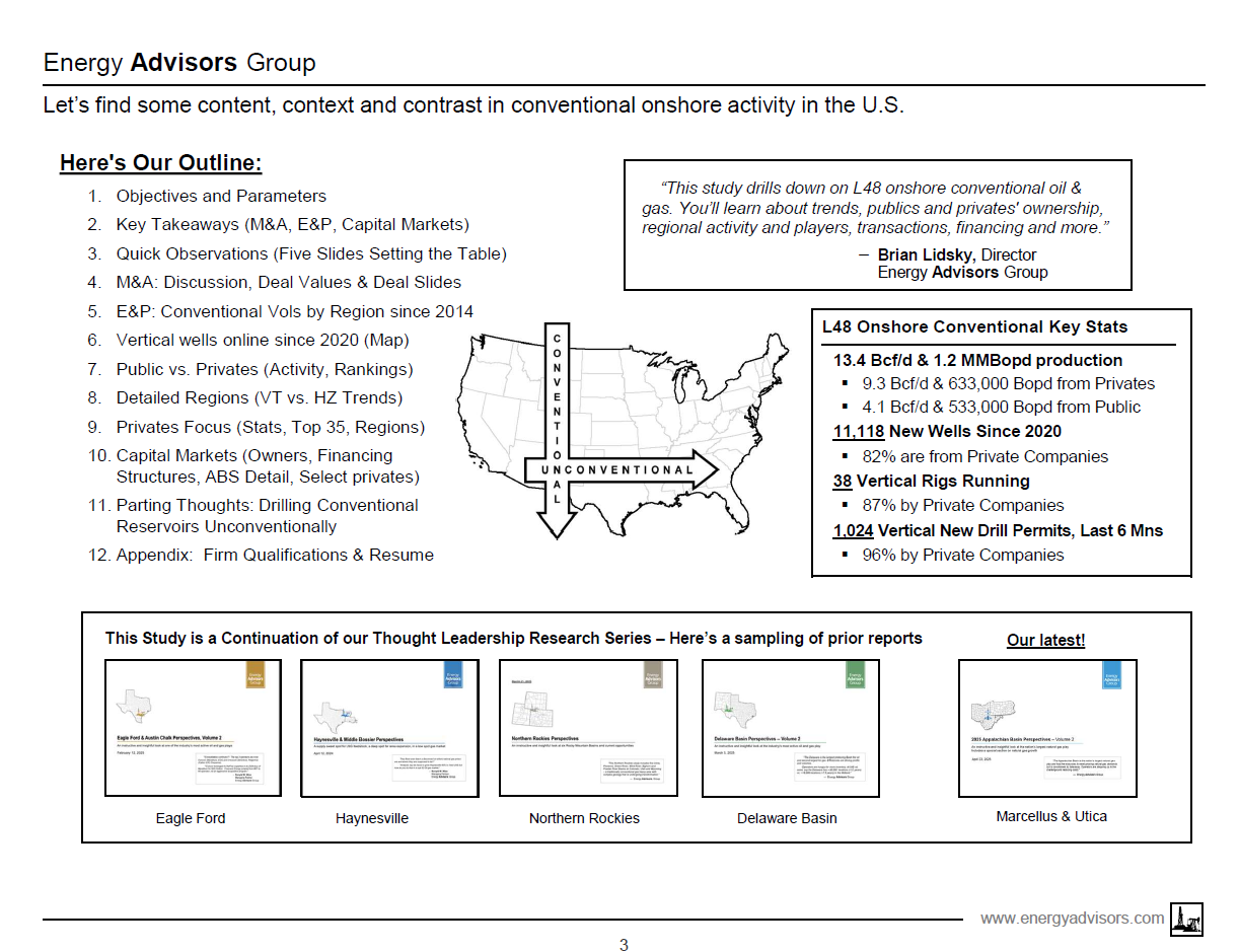 Energy Advisors Group has released our Lower 48 Onshore Conventional Study as a continuation of our Market Monitor Series and thought leadership efforts. This inaugural 90-page Special Report drills down on Lower 48 onshore conventional E&P (vertical & directional wells). We provide fresh perspectives on M&A, E&P, and Capital Markets.