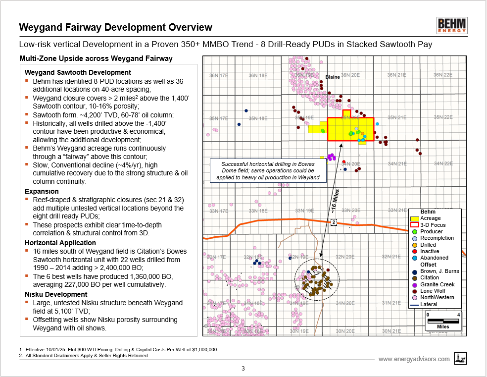 - Proprietary 3-D Seismic (19 sq miles). Thick Pay Zone (60-80 ft Oil Column)