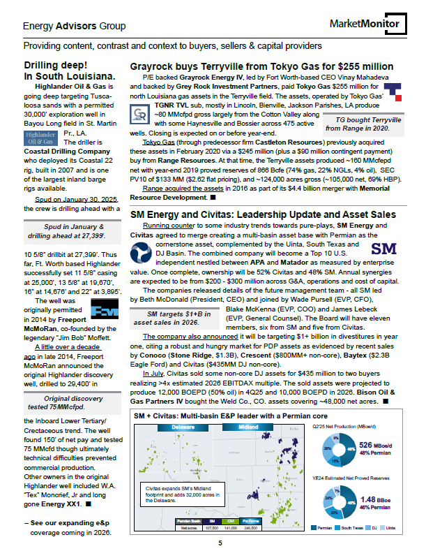 Page 5 Drilling Deep in South Louisiana, Grayrock Buys Terryville, SM+CIVI Selling $1B+ -----