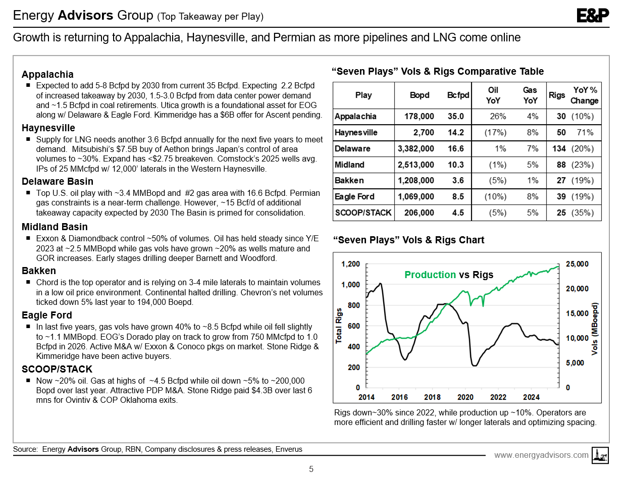 Appalachian Basin, Haynesville, Delaware Basin, Midland Basin, Bakken, Eagle Ford & SCOOP STACK