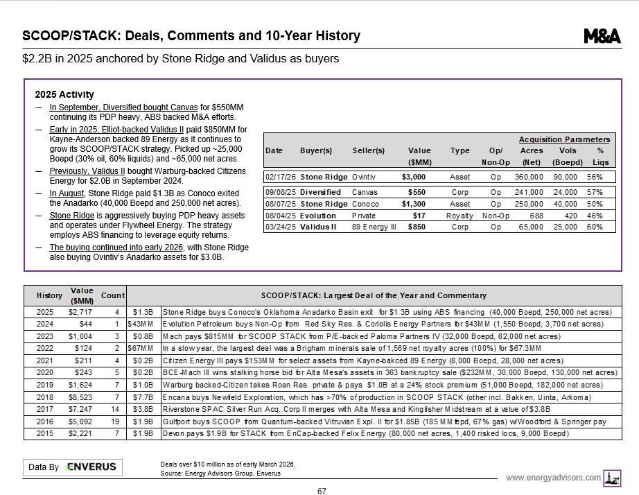 Attractive PDP M&A. Stone Ridge paid $4.3B over last 6 months for Ovintiv & COP exits.