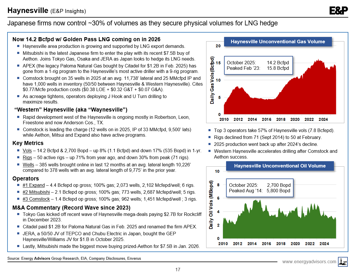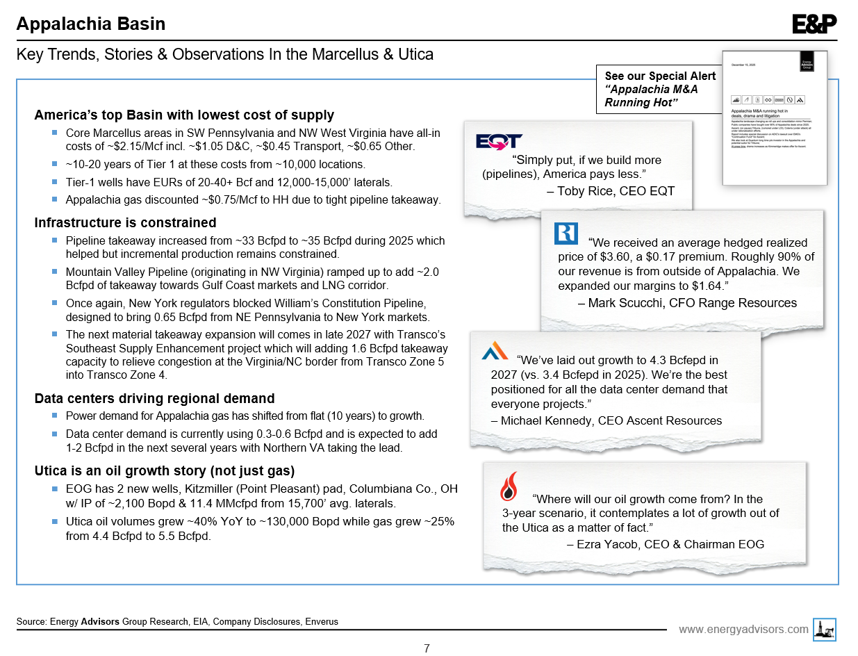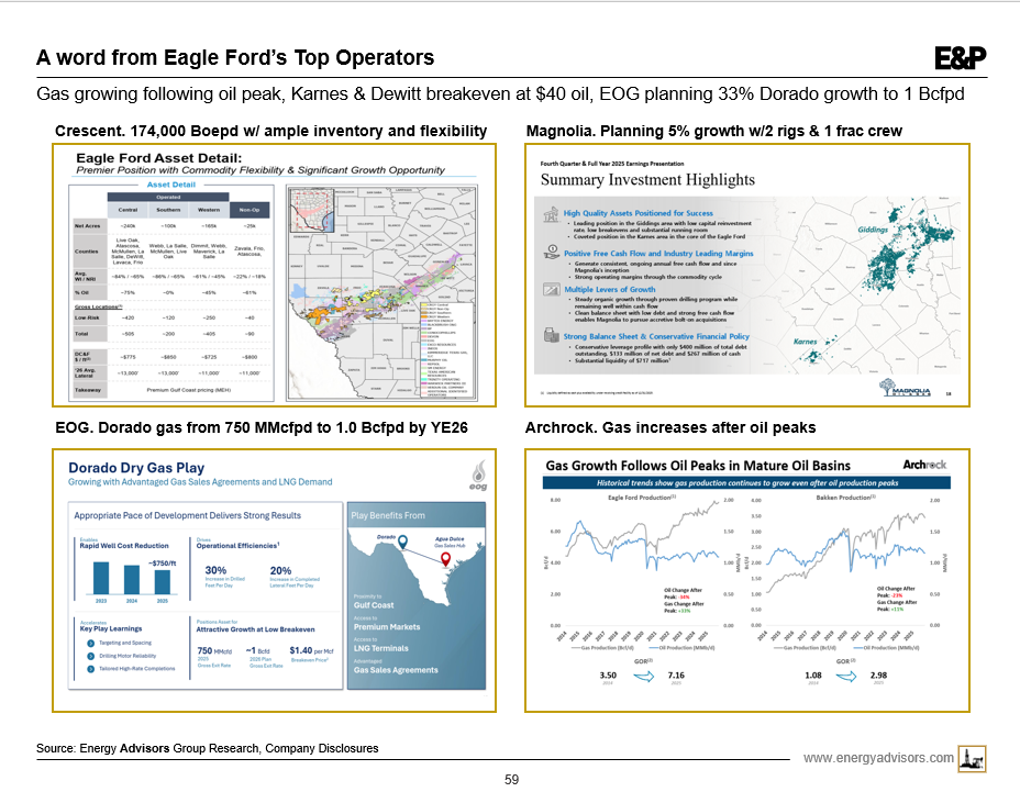 held steady at ~1.1 MMBopd. EOG’s Dorado play on track to grow from 750 MMcfpd to 1.0 Bcfpd in 2026.