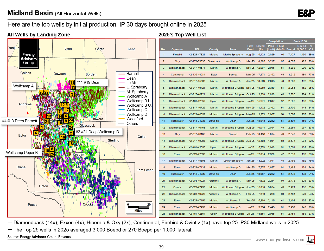----- Midland Basin: Exxon & Diamondback control ~50% of volumes. Oil has held steady since Y/E 2023 at ~2.5