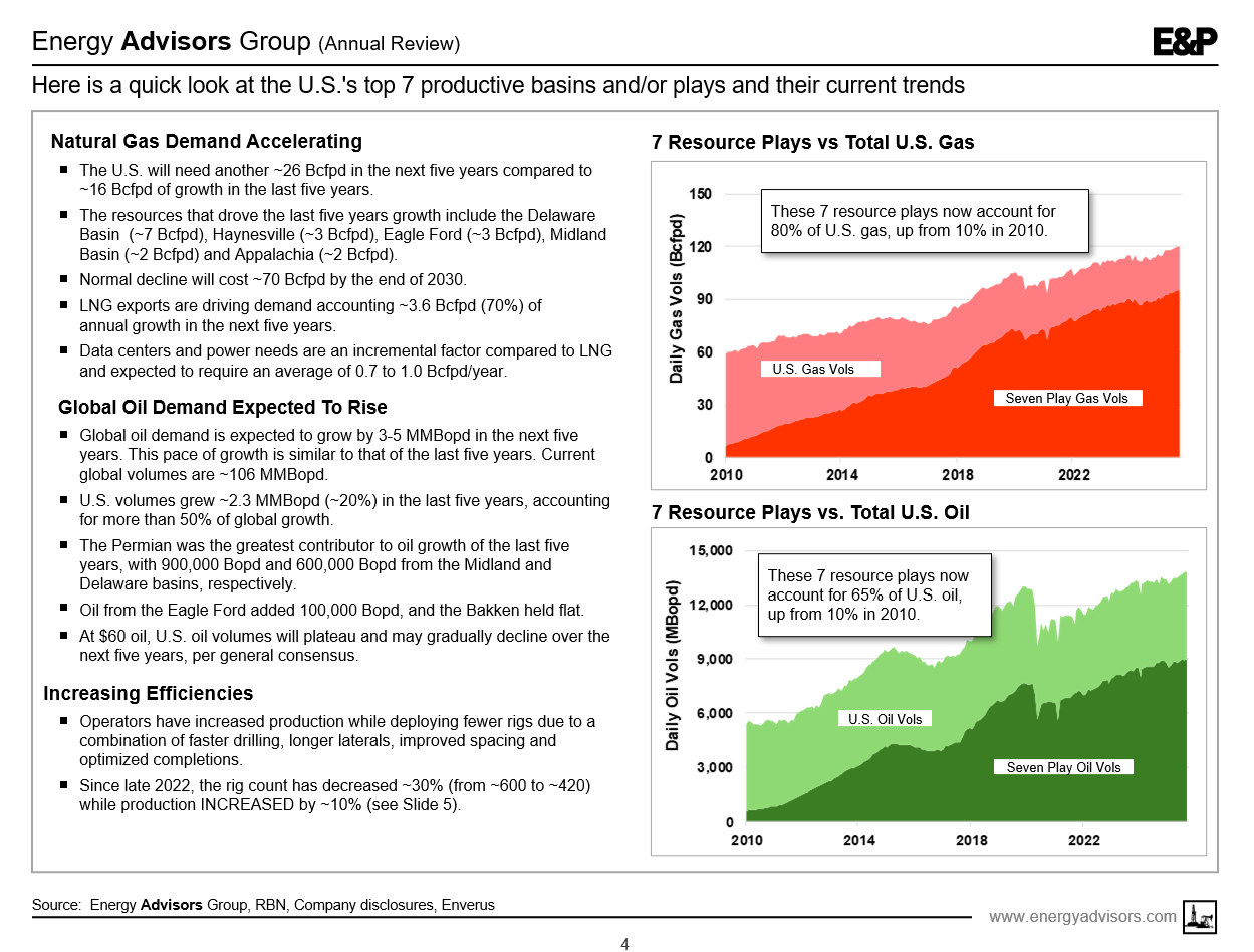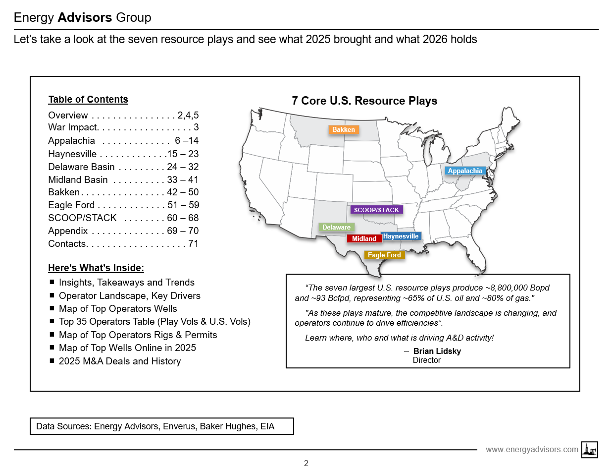Energy Advisors Group has released our Year in Review for Seven Core U.S. Resource Plays as a continuation of our thought leadership efforts. This 71-page Special Report covers: